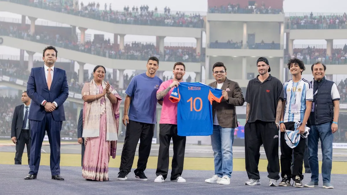 Messi greeted the players playing in the exhibition match and then gifted the balls to the fans with his kicks. He took a lap around the venue before meeting the dignitaries at a dias present at the venue.