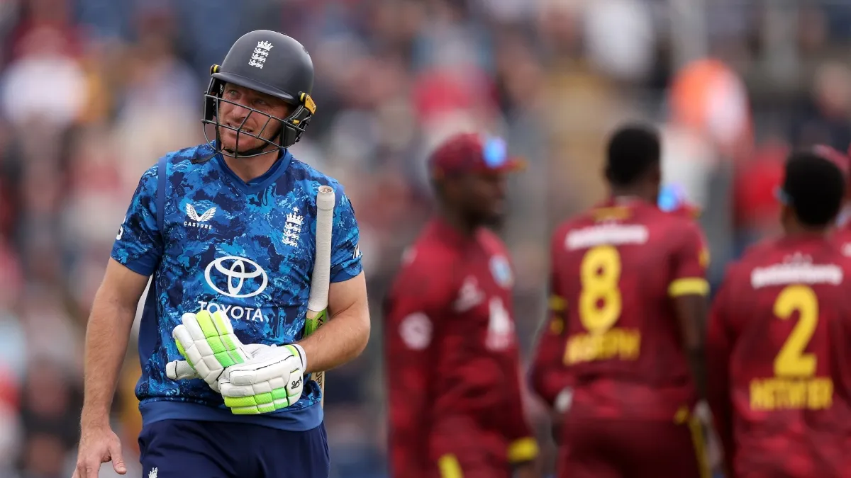 Former England captain Jos Buttler recorded his 15th duck in ODIs after Alzarri Joseph bounced him out in the second game of the three-match series in Cardiff on Sunday, June 1. England had just lost their skipper Harry Brook and needed someone to complement Joe Root in a big run chase of 309. However, Buttler was on the front foot and didn't have enough time to adjust and go back and was caught in between and ended up chopping it on the stumps.