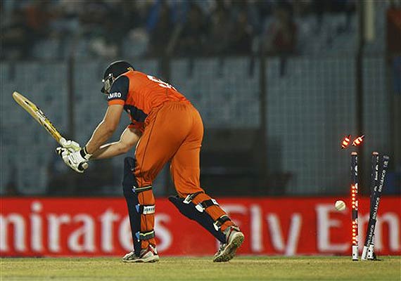 39 in 10.3 overs (Netherlands) : Netherlands vs Sri Lanka at Chittagong. It was Nuwan Kulasekara who started the proceedings of dismissing the batsmen of Netherlands. After the previous display by the Netherlands batsman against Ireland , it was expected that they will present a stong reply to the lankans but they were just blown away by the Lankan bowlers.