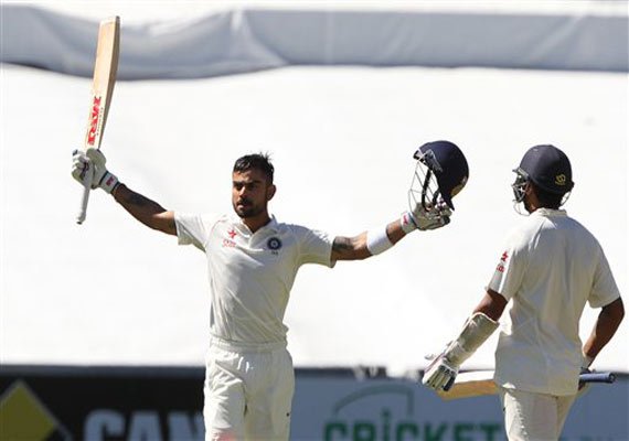 Dubai: Riding on his twin centuries in the first Test against Australia, India's star batsman Virat Kohli has jumped 11 places to be 16th in the latest International Cricket Council (ICC) rankings while in-form Murali Vijay also gained eight places.