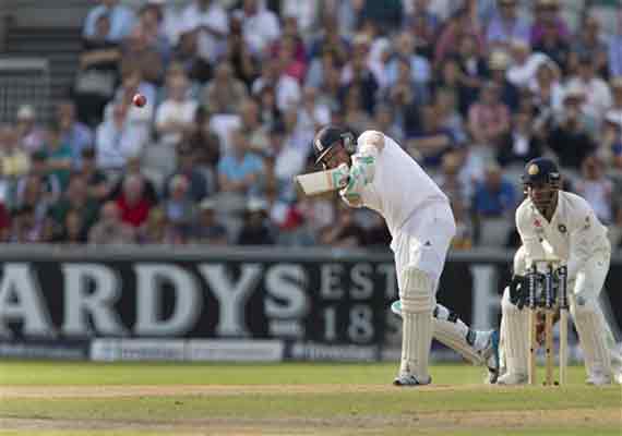 England, after sending entire Indian team back at 152, did not have it all their own way in reply, certainly against the new ball as Sam Robson and Alastair Cook departed cheaply to leave them 36 for 2. However, on a gloriously sunny evening Ian Bell, after wild pull first ball, clicked into gear with a string of boundaries which included advancing down to loft R Ashwin for a straight six.