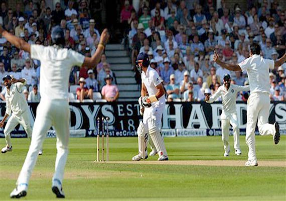 While it was Ishant (3/109), who rocked the top-order with three quick dismissal, Bhuvneshwar Kumar's (4/61) controlled swing bowling decimated the lower-middle order although a couple of debatable decisions went in home team's favour. The third pacer of the troika, Mohammed Shami (2/98) added a scalp to his yesterday's wicket of Alastair Cook.