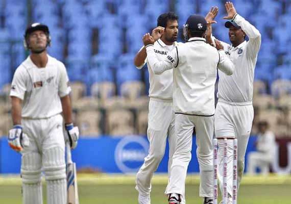 New Zealand 1st Innings 192 (Kane Williamson 47, Jimmy Neesham 33, Tim Southee 32; Ishant Sharma 6-51, Mohammed Shami 4-70).