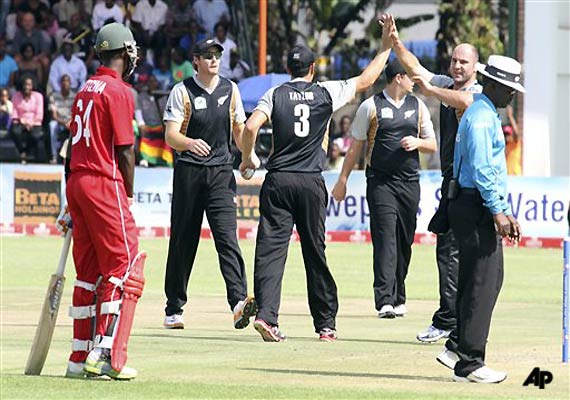 He removed both openers, Hamilton Masakadza and Chamu Chibhabha, for 9 to peg back the hosts. First to go was Masakadza, who fell to a full delivery that was caught at mid off by Nathan McCullum. Chibhabha drove straight to Brendon McCullum.