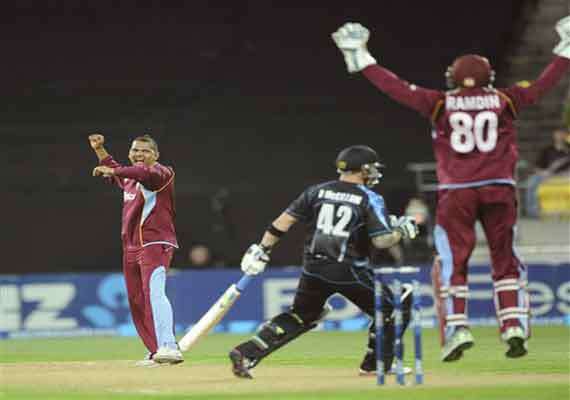Wellington, New Zealand: Scoreboard Wednesday from the second Twenty20 cricket international between New Zealand and West Indies at Westpac Stadium: