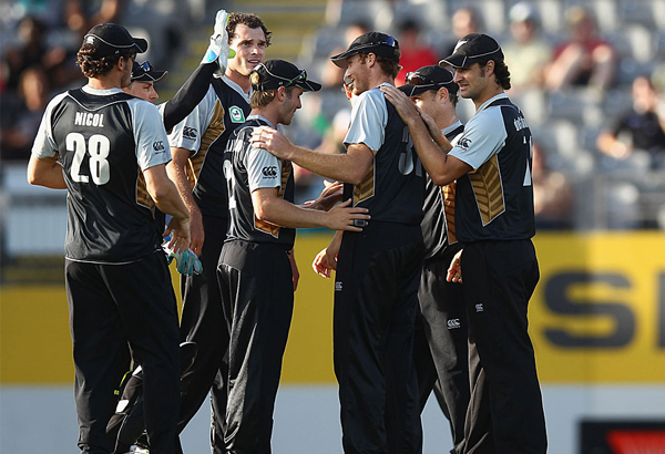 New Zealand suffered early setbacks, losing opener Rob Nicol and McCullum within three balls in the second over bowled by Kyle Jarvis. At 15-2, they were under pressure for the first time in the test, one-day or Twenty20 series but Guptill's outstanding form remained its bulwark against failure.