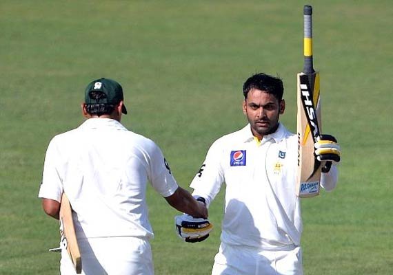 Hafeez, who scored 96 and an unbeaten 101 in Pakistan's 248-run victory in the first test, raised his seventh test hundred off 130 balls, when he pulled and cut Craig for two consecutive boundaries then turned the offspinner to square leg for a single.