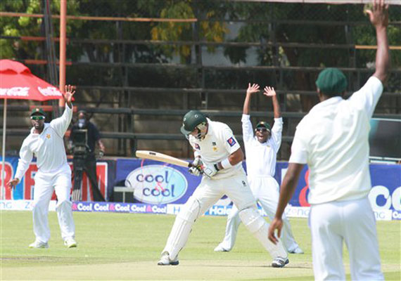 Seamer Tinashe Panyangara took 2-15 and his new-ball partner Tendai Chatara had in-form opening batsman Mohammad Hafeez caught at second slip for 5.