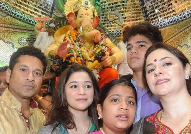 The batting maestro added spark to the celebration by posting a picture of him with his wife Anjali, son Arjun and daughter Sara in front of Lord Ganesh . The family visited Mumbai's biggest Lord Ganesha pandal, Lalbaugcha Raja.