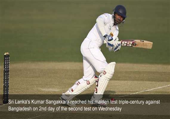 Earlier, Kumar Sangakkara reached his maiden test triple-century on Wednesday to lead Sri Lanka to a mammoth first innings lead of 501 on the second day of the second test against Bangladesh.