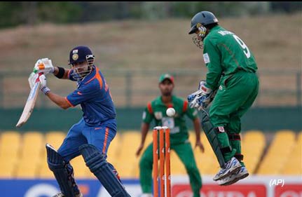 Opting to bat, Bangladesh got off to a brisk start with Tamim Iqbal (22) and Imrul Kayes (37) producing 35 runs in 17 balls. But once Tamim perished to a low catch by Suresh Raina at short extra covers off Praveen Kumar, they just could not force the pace against a disciplined Indian attack.