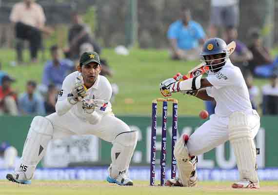 Silva was batting on 38 while Sangakkara, who could have been out lbw for 13 had Saeed Ajmal went for the review, was on a dodged 36.