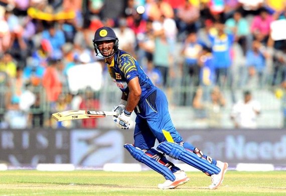 Chris Woakes dismissed opener Tillakaratne Dilshan (16) early in Sri Lanka's chase, caught by Morgan. Off spinner Moeen Ali induced an edge off Kusal Perera (31) for a catch to Chris Jordan at slip to leave the hosts at 69-2. But Sangakkara and Jayawardene then combined to lay a solid foundation.