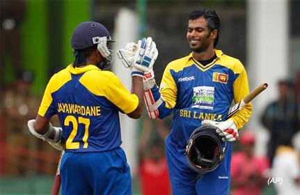 After a brief rain interruption, Sri Lanka was given a revised target of 197 in 47 overs under the Duckworth/Lewis method and reached it with 27 balls to spare. Tharanga was 101 not out.