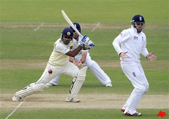 Having been set a near impossible 343 off 58 overs when England declared its second innings on 335-7, Sri Lanka lost stand-in opener Kumar Sangakkara for 12 in the fifth over.