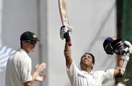 Tendulkar's knock of 214 came against Australia in the second Test here. The right-hander took 363 balls and struck 22 fours and a couple of sixes during his stay on the crease. He was dismissed by rookie Australian pacer Peter George who clean bowled the Indian for his maiden Test wicket.