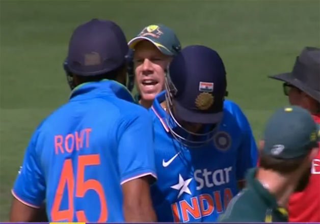 Melbourne: Tempers flared once again during the second one-dayer of the ongoing cricket tri-series when Indian opener Rohit Sharma and Australian batsman David Warner got involved in a verbal exchange at the MCG, here today.