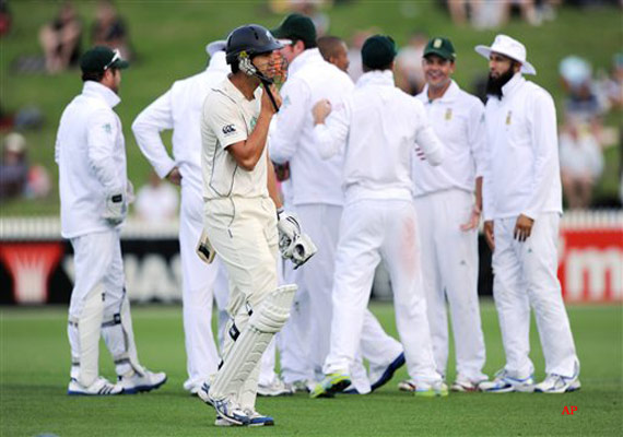 New Zealand's fading hopes of levelling the series received a severe setback when captain Ross Taylor was hit on the left forearm by paceman Morne Morkel.