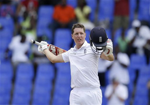 Ballance arrived at his 100 off the 233rd ball he faced as he and wicket-keeper Jos Buttler took advantage of listless bowling and defensive field placings in a partnership of 55. The only threat to Ballance was a fierce straight drive by Buttler off Holder that hit him on the left bicep, requiring on field attention from the team's physiotherapist.