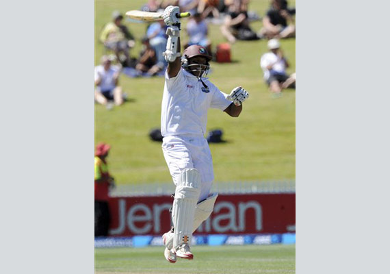 Earlier, Chanderpaul started the day on 94 not out, needing only four runs to pass Australia's Allan Border and to move into sixth place on the all-time list. Chanderpaul accomplished that quickly, then reached his 29th test century, kneeling and kissing the Seddon Park pitch in thanks.