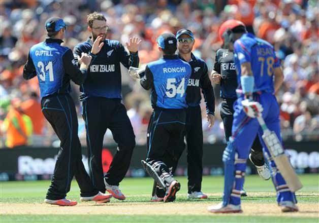 The frayed confidence from that game was evident as it lost opener Javed Ahmadi, lbw to Trent Boult, to only the ninth ball of its innings and Ghani, to Vettori, five balls later which it was 6-2. Boult then dismissed Asghar Stanikzai (9) in the ninth over, and Vettori's quick three wickets put Afghanistan at strong risk of a sub-100 score.