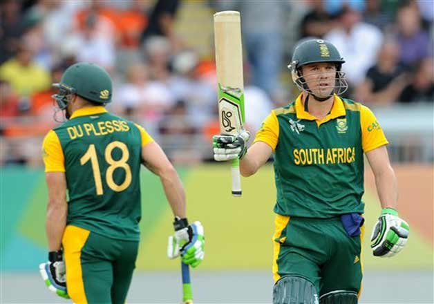 South Africa was 216-3 — du Plessis was 82 and de Villiers 60 — when rain stopped play for almost two hours from the end of the 38th over. The weather delay threatened to break the growing momentum: du Plessis and de Villiers had added 87 runs in the eight overs before the interruption.