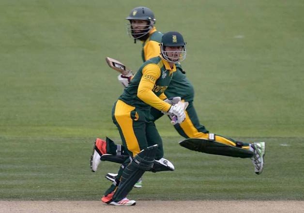 South Africa: Hashim Amla, Quinton de Kock, AB de Villiers (captain), J.P. Duminy, David Miller, Muhammad Imran Tahir, Faf du Plessis, Dale Steyn, Farhaan Behardien, Vernon Philander, Morne Morkel.