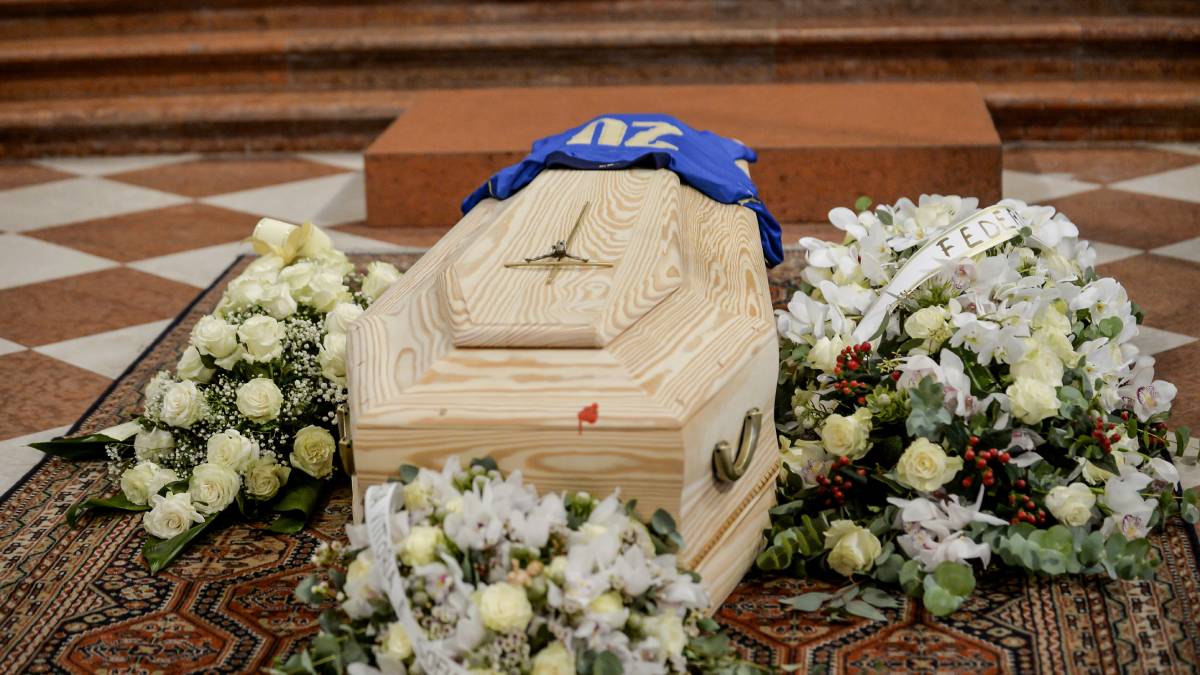 Rossi’s shirt from the World Cup was laid on top of the coffin.