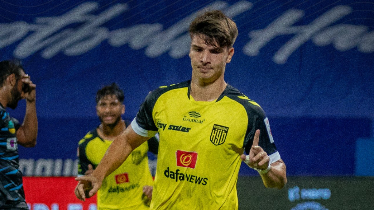 Kerala responded with an attempt that found the crossbar from a Chencho Gyeltshen left-footer after the Bhutan striker was set up by Harmanjot Khabra who flicked on an Adrian Luna corner in his path. At halftime, league leaders Hyderabad led 1-0.