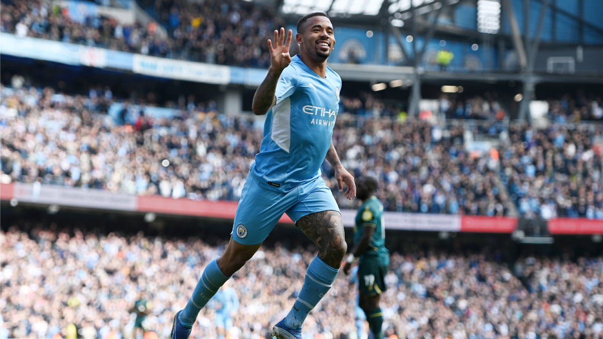 Jusus scored more goals in 53 minutes than he had in the previous eight months in the English Premier League. He netted twice in the first half and twice more in the opening eight minutes of the second half — one of which was a penalty to complete his hat trick.