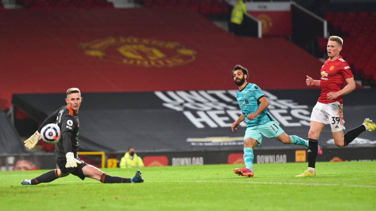 Nemanja Matic gave the ball away in the 90th minute and Curtis Jones passed down the middle for Salah to run onto and then curl a low shot past Henderson.