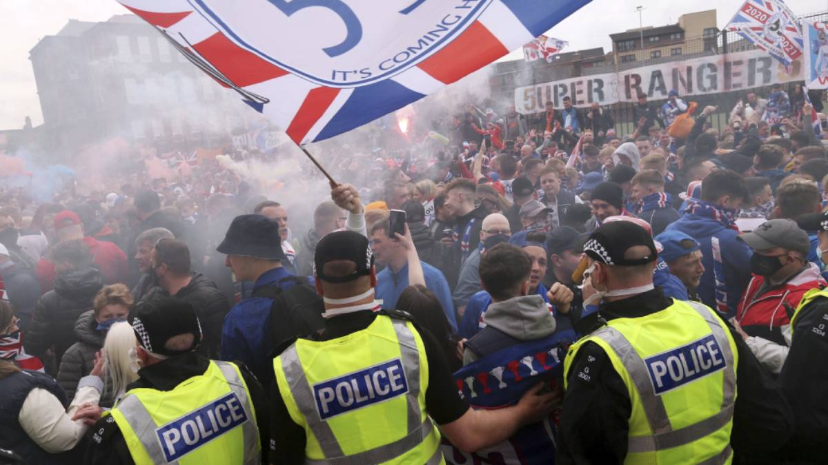 Rangers fans had defied a COVID-19 lockdown in March, when the team clinched the domestic title — its 55th — and dethroned Glasgow rival Celtic in the process.