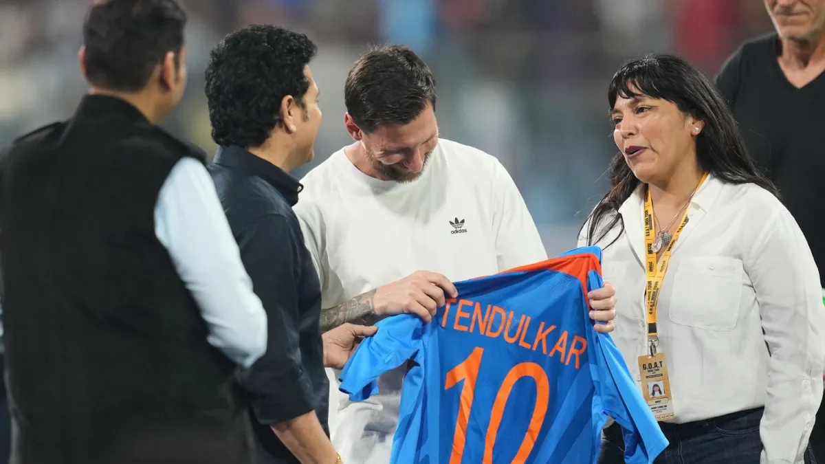 Among other bigwigs, Messi met India legend Sachin Tendulkar at the iconic venue and exchanged pleasantries. Sachin gifted the Argentine legend with his India jersey, while Messi also presented the Indian giant with a World Cup ball.