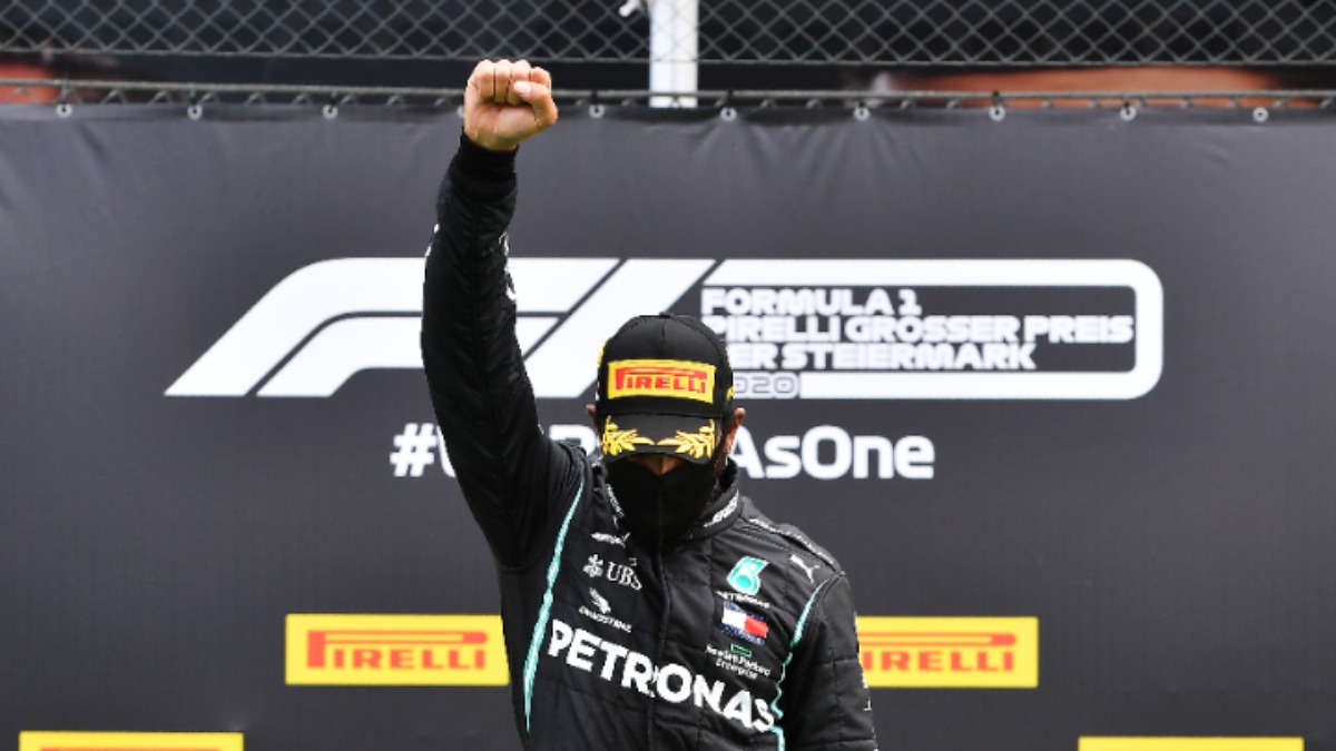 Standing on the podium to celebrate his latest win, Formula One world champion Lewis Hamilton raised a clenched right fist and then delivered a message to his fellow drivers not to slow down in the fight against racism.