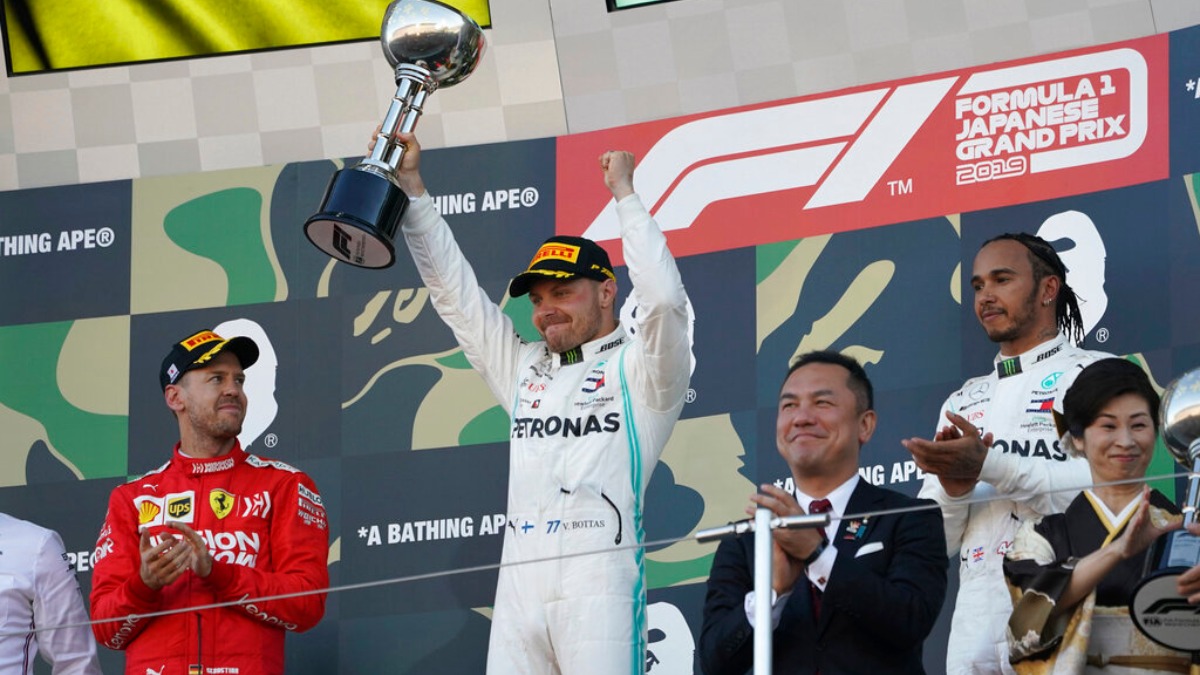Bottas then held on for his first victory in Japan to slightly narrow Hamilton's commanding championship lead to 64 points with four races left.