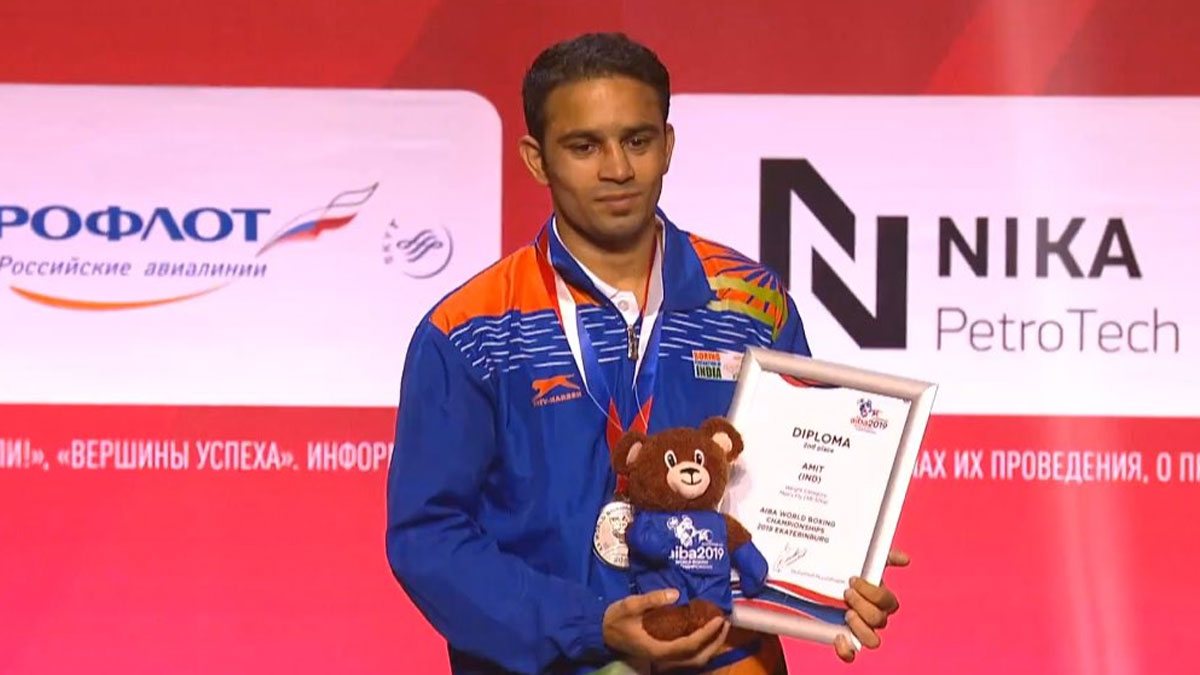 Amit Panghal settled for silver in the World Men's Boxing Championships on Saturday at Ekaterinburg, Russia.