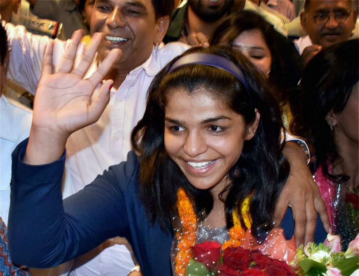 Sakshi, who arrived in Delhi's Indira Gandhi International (IGI) Airport early on Wednesday from Rio de Janeiro, was given a rousing reception at the airport itself.
