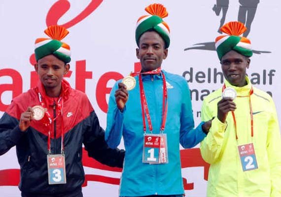 New Delhi: Ethiopian Guye Adola demolished the course record to win the men's race while Kenyan Florence Kiplagat became the first runner to defend the women's crown in the Airtel Delhi Half Marathon here Sunday.