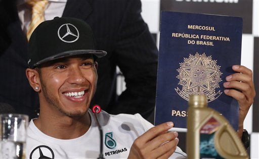 A local TV show even gave Hamilton a mock Brazilian passport and a Brazil football jersey with his picture on it, saying they wanted him to represent Brazil this weekend.