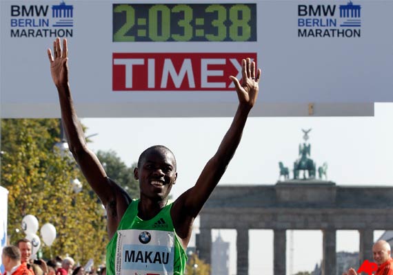 Berlin, Sept 25: Patrick Makau of Kenya broke the world record to win the Berlin Marathon on Sunday.