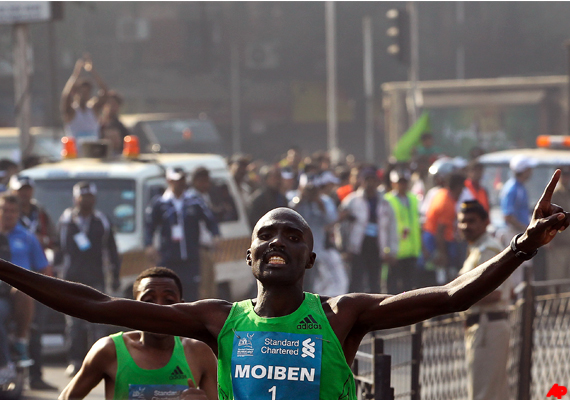 Moiben, whose previous best timing in a marathon was 2:09:44-- set in Ottawa in May 2010 -- completed the 42-km race in 2:18:48. He was followed by Ethiopian Raji Assefa (2:10:48) and compatriot John Kyui (2:10:54).
