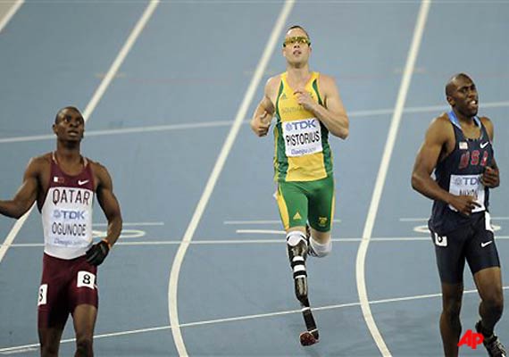 It was already considered an amazing performance for Pistorius, who had his legs amputated when he was a baby, to get into the 400 semifinals on his carbon-fiber blades, but Thursday's relay performance did one better.