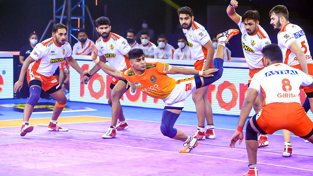 Ajay Kumar secured a Super 10 for Gujarat Giants but Pune kept finding points with Aslam Inamdar shining. With five minutes on the clock, Pune had an 8-point lead.