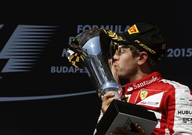 Budapest, Hungary : Ferrari driver Sebastian Vettel won an action-packed Hungarian Grand Prix for the first time on Sunday, while Nico Rosberg saw his chance to catch Lewis Hamilton in the title race disappear with a puncture near the end.