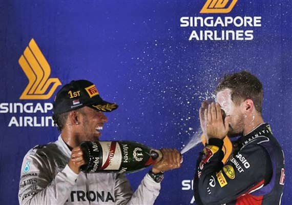 Hamilton led comfortably but was forced into a late pit-stop, briefly giving up the race lead to Red Bull's Sebastian Vettel, before he passed the German seven laps from the finish to win by 13.5 seconds at the Marina Bay circuit.