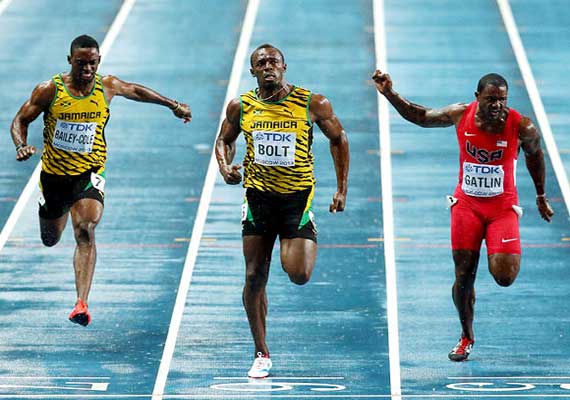 Moscow, Aug 12 : The fastest man in the world Jamaican Usain Bolt on Sunday clocked a season's best of 9.77 seconds to win the 100 metre gold in World Athletic Championships here.