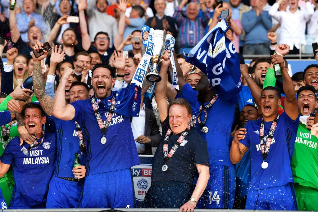 With a 0-0 draw at home to Reading, Cardiff joined champion Wolverhampton Wanderers in going up to the world's most lucrative league as its 69-year-old manager, Neil Warnock, earned a record eighth promotion in English football.