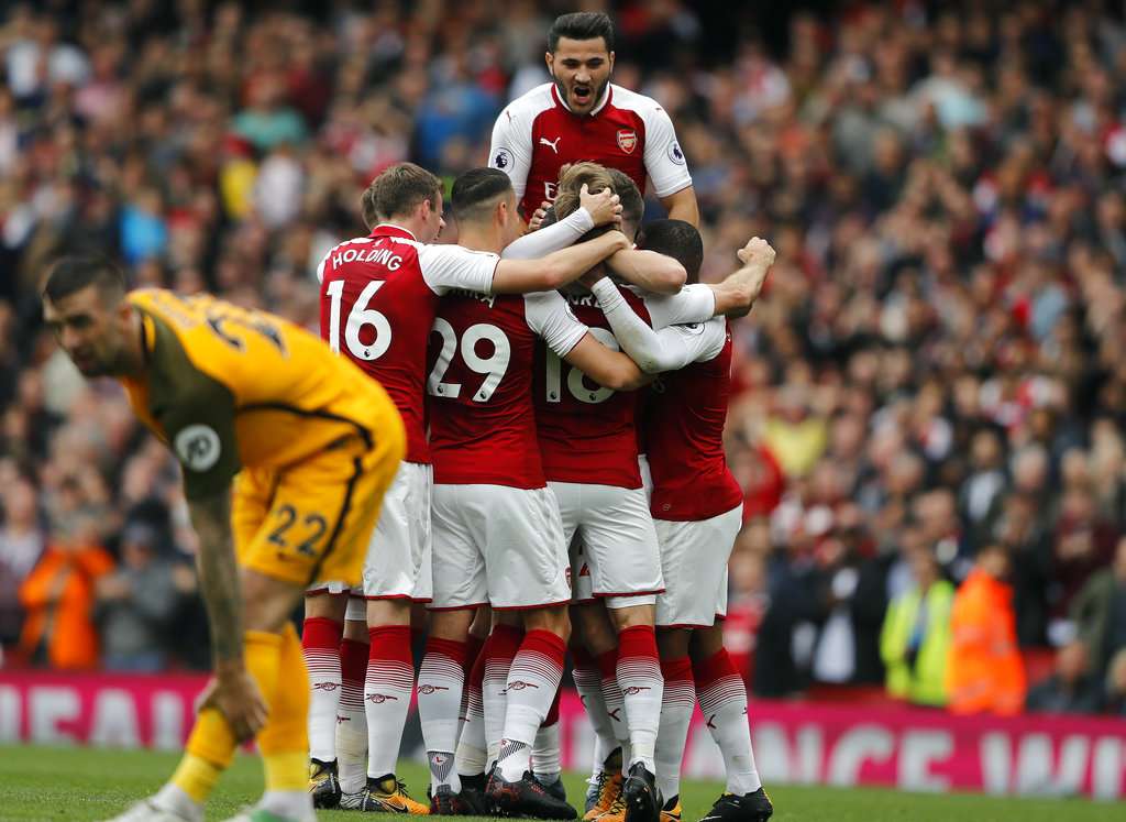 Lacazette was fouled by Jose Izquierdo on the right side of the box and then kept the resulting cross alive by heading the ball back in off the line. As Brighton's defenders claimed for a goal-kick, Shkodran Mustafi and Hector Bellerin had shots blocked before Monreal finally found space to poke in his first league goal since March 2013 in the 16th minute.