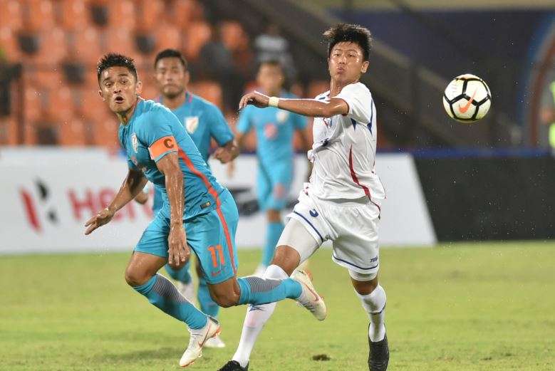 India started on the offensive straight away and were rewarded for their attacking intent when Jeje Lalpekhlua forwarded a through ball for Chhetri to slot the ball past the Chinese Taipei goalkeeper following an expert first touch.