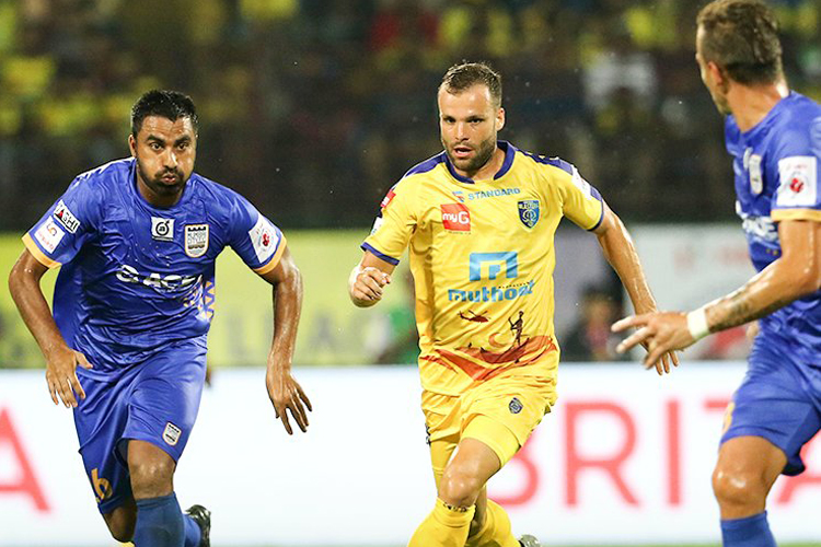 Kerala Blasters began well with an excellent low cross by Seiminlen Doungel from the left-flank in the third minute which found Narzary but Mumbai custodian Amrinder Singh placed himself well to deny the Kerala winger.